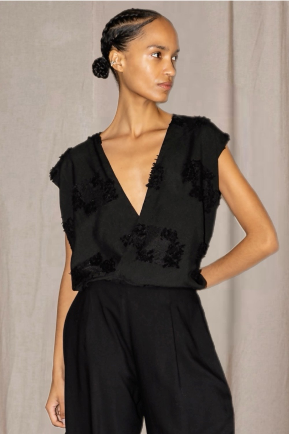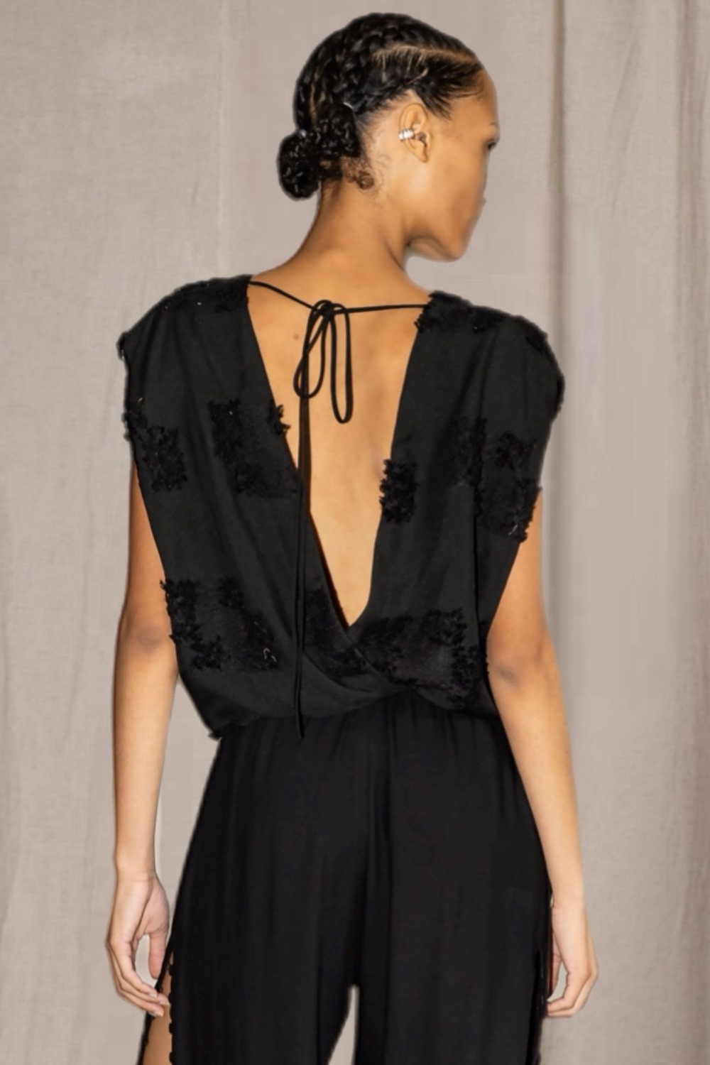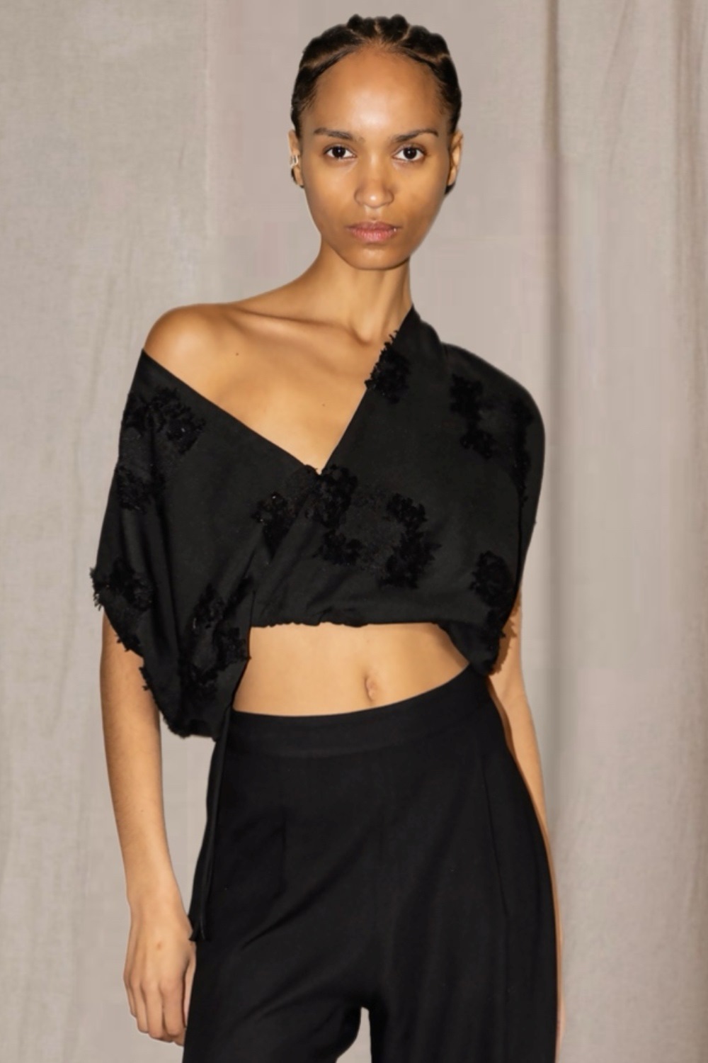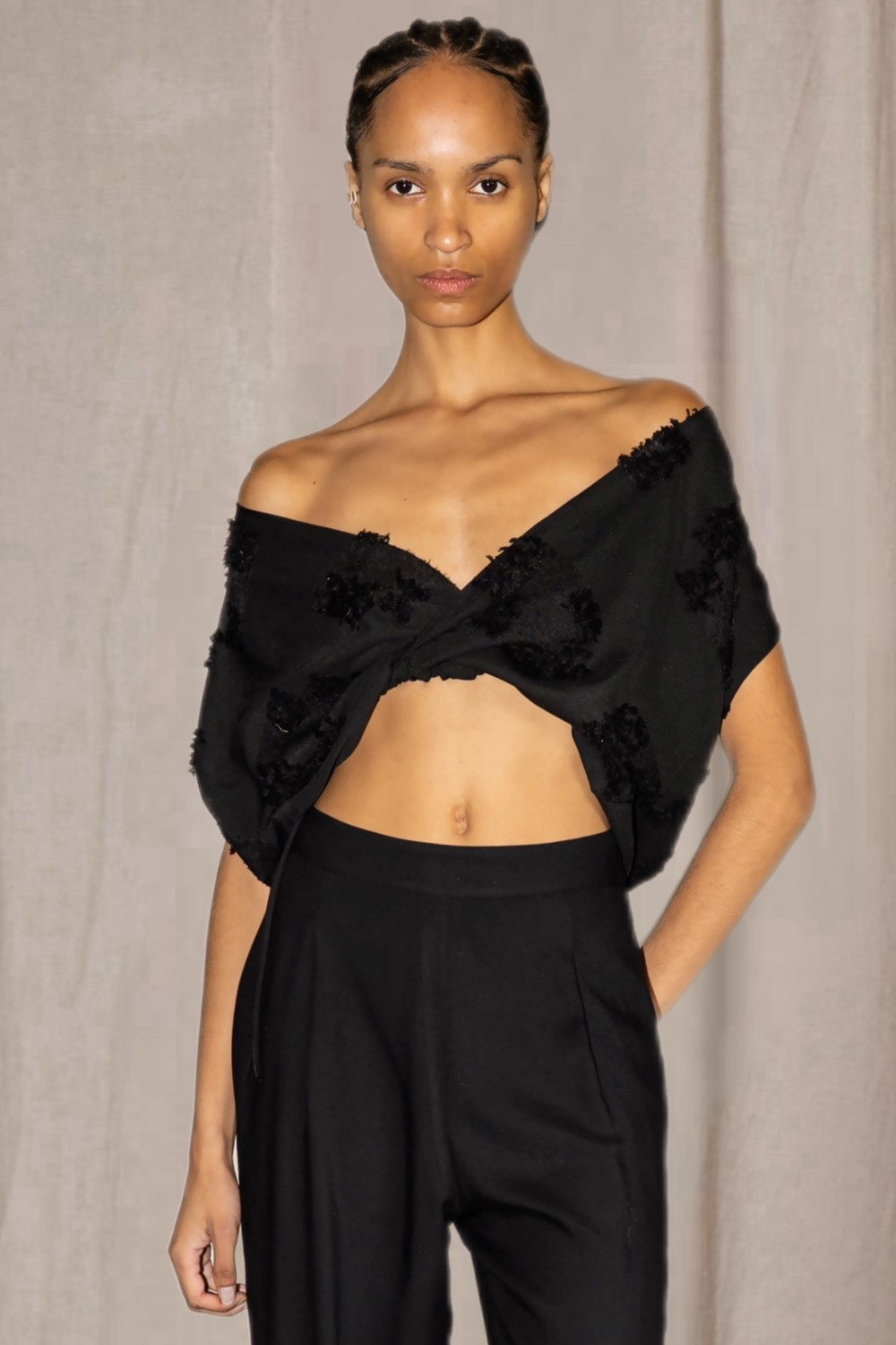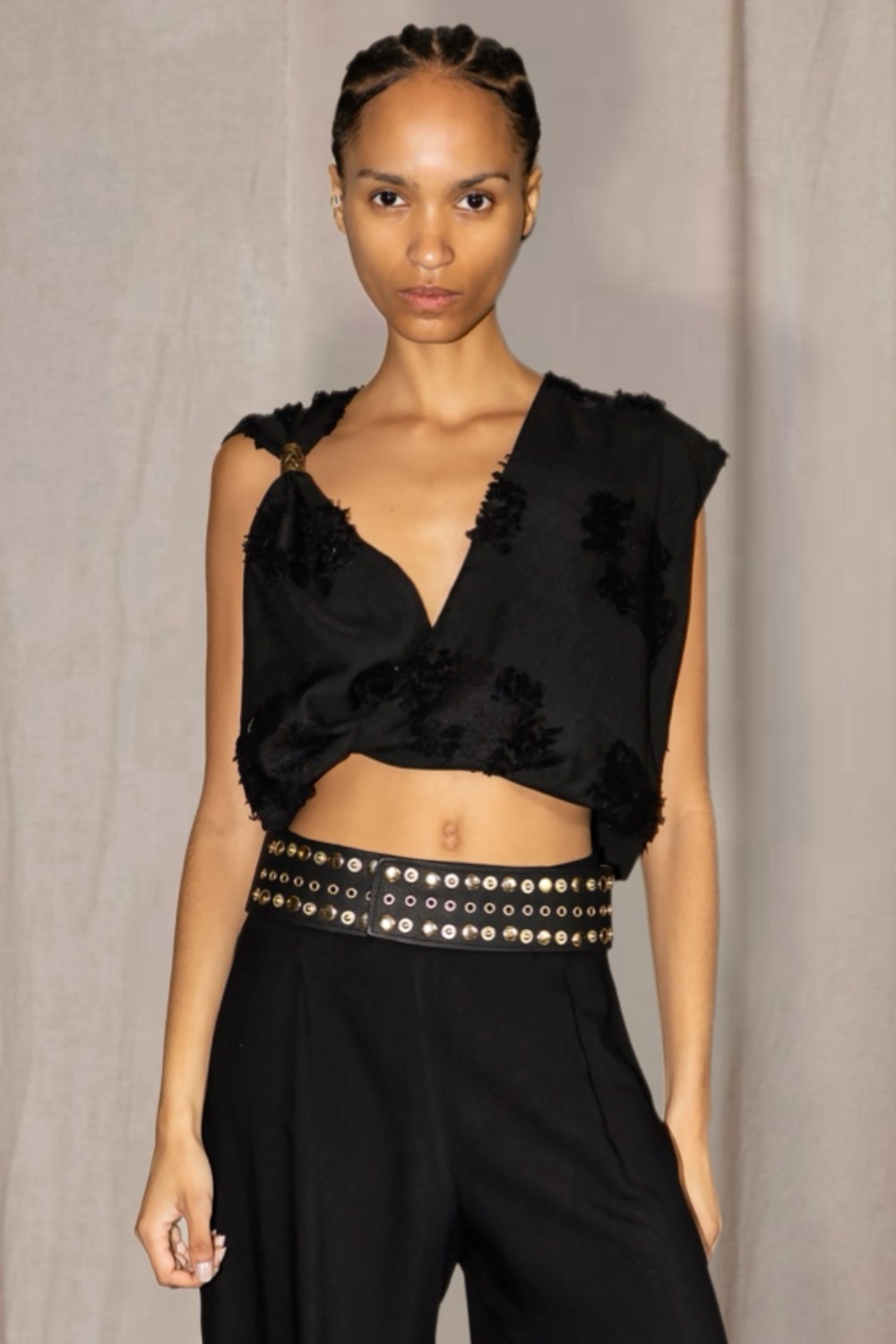 Sade bir zarafetle başlayan çizgi, bir anda asi bir tavra dönüşebiliyor. Ayarlanabilir sırt biyesiyle ister tamamen kapalı, ister iki omuz açık, istersen L formunda tek omuz açık şekilde kullanabilirsin. Bel kısmındaki biye sayesinde ise dilersen bluz gibi, dilersen büstiyer edasında taşıyabilirsin. Özel aparatıyla birlikte ise asimetrik bir askılı büstiyer formuna bürünür, güçlü ama zahmetsiz bir siluet yaratır. Bu parça sekiz farklı stile değil, sekiz farklı sana ait. İçindeki farklı senlerle buluşman, bir düğüm, bir çözülüş, bir kayış meselesi. Nasıl hissettiğinle şekillenen, moduna göre form alan bir özgürlük ifadesi. Senin gibi; sade ama güçlü, cool ama umursamaz, cesur ama incelikli.