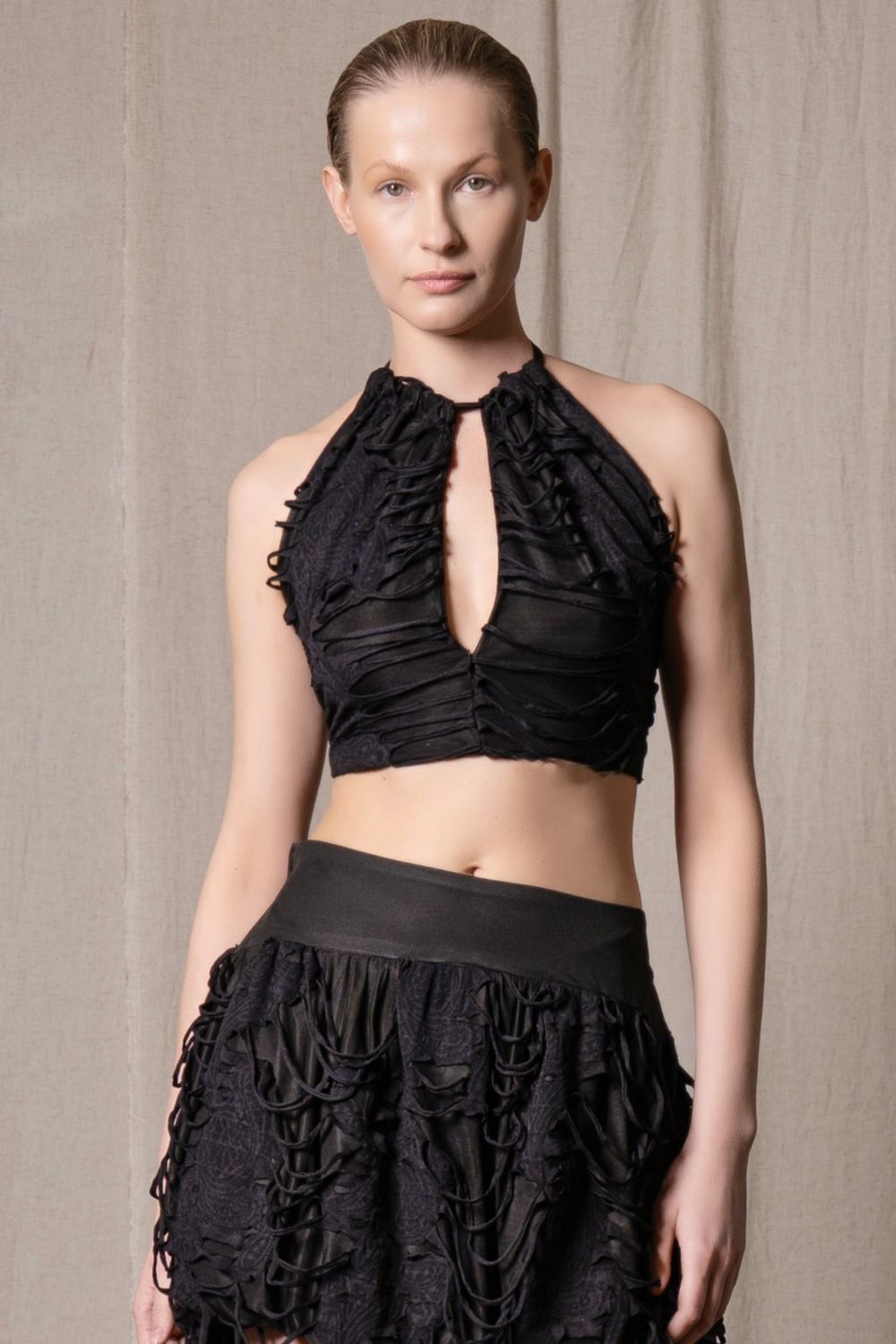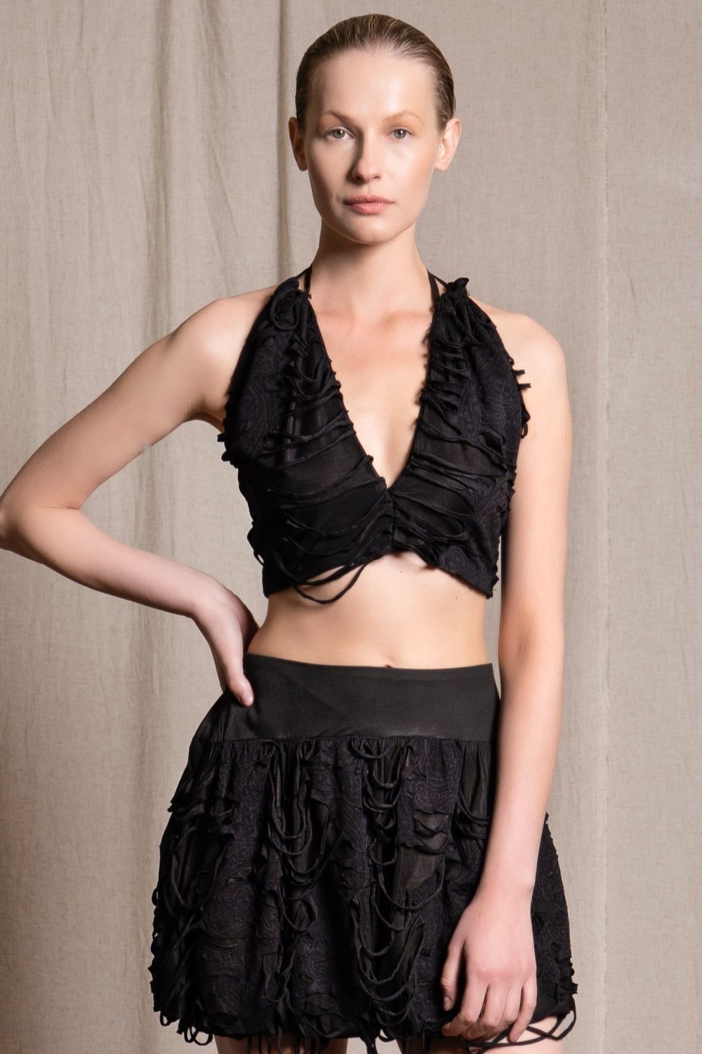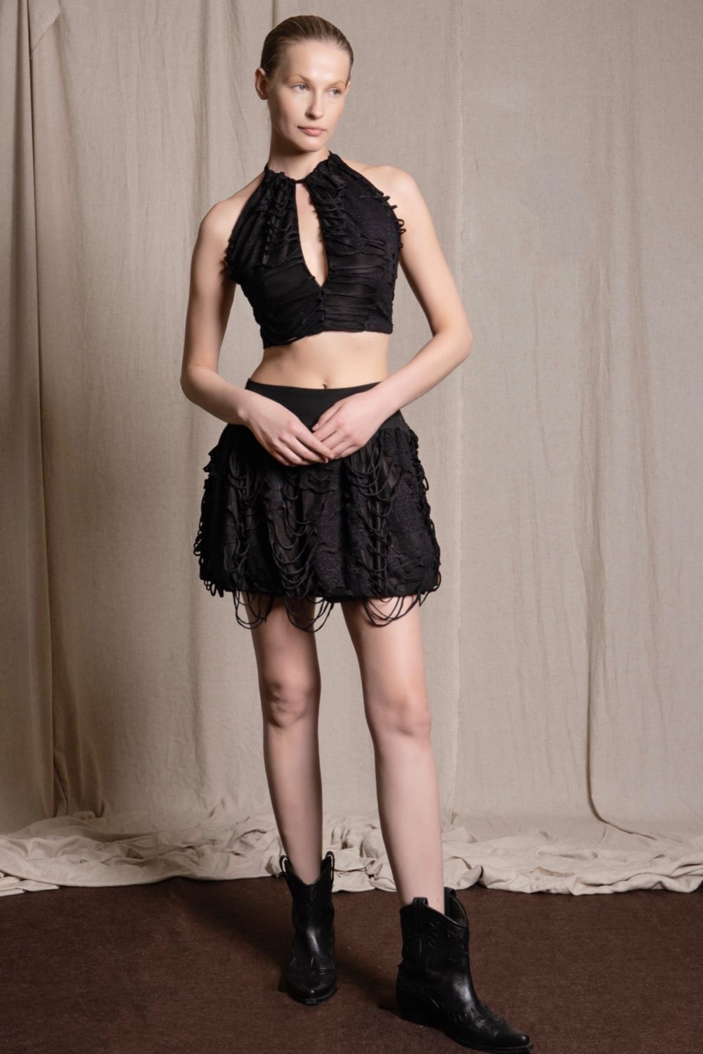 Karanlığın içinde dans eden zarafet… BLACK SWAN, isyankâr bir zarafetin ve gizli ihtişamın sembolü. Lazer kesimlerle yırtılmış siyah dokular, içlerinden süzülen dantelin narinliğiyle buluşuyor. Her detay, feminenliğin hem en kırılgan hem de en güçlü hâlini anlatıyor. Siyahın asaletiyle örülü bu koleksiyon; kontrolü elinde tutan ama kendi kurallarını yazan kadınlar için tasarlandı. Çift taraflı kullanım, seyyar parçalar, ayarlanabilir kesimler… Her parça, kendini yeniden tanımlamak isteyenler için bir araç.