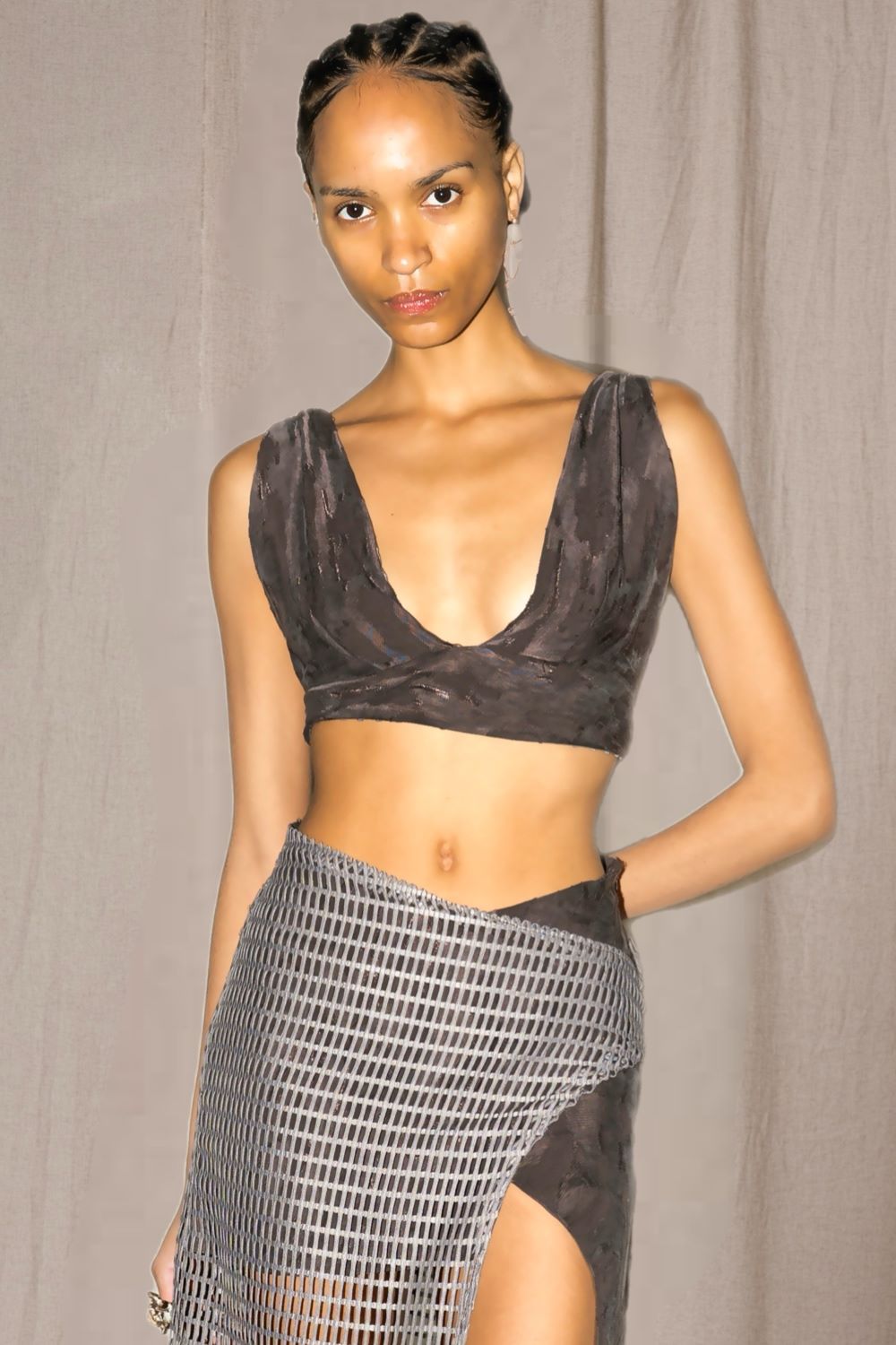 Mocha tonlarındaki doğal desenli kupra kumaş ve transparan file dokularla şekillenen bu koleksiyon; hem şık hem de cesur bir duruş sergiliyor. Her parça, içgüdüsel bir enerji taşırken sofistike bir sadeliğe de sahip. Wild Innocence, güçle şıklık arasında seçim yapmaya değil, ikisini aynı anda taşımaya cesaret eden kadınlar için tasarlandı.