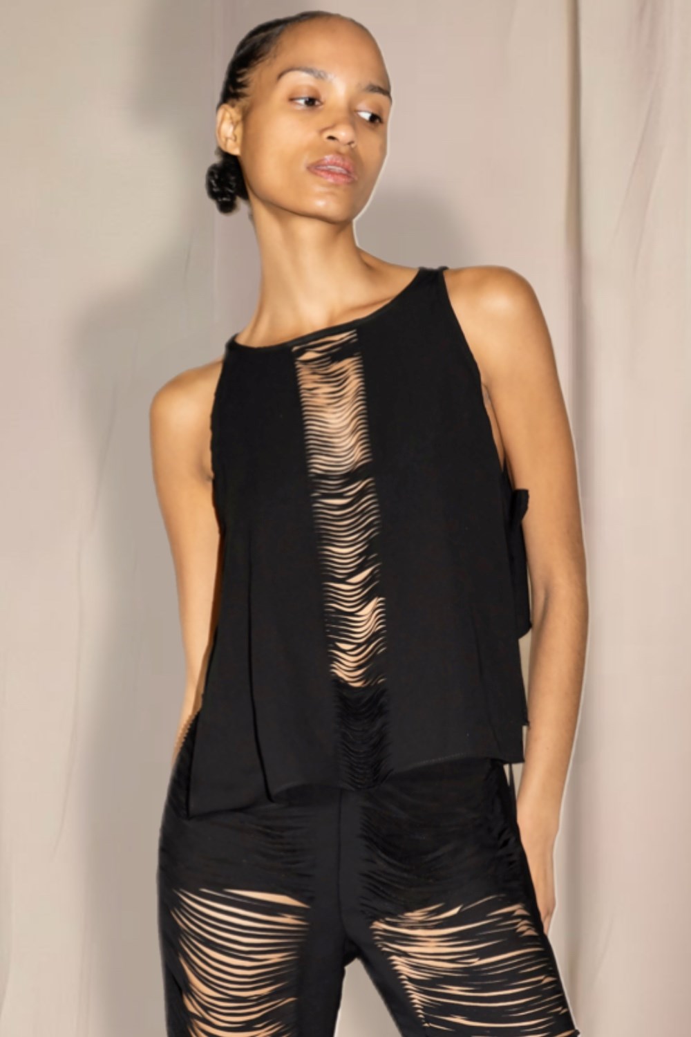 Keskin hatlarla zarafetinin birleştiği Untamed Me büstiyer, arkalı-önlü giyilebilen tasarımıyla tarzını yansıtıyor. Kayık yaka tercih ettiğinde sırtındaki derin V dekolteyi sergileyerek sofistike bir zarafet ortaya koyarken, V kesim göğüs dekoltesiyle cesur bir görünüm yaratıyor. Kollarındaki lazer kesim detayları, kumaşın her geçişinde özgün bir hava yaratıyor; bu detaylar sıradanlığa meydan okurken, keskin hatlarla birleşiyor. Untamed Me Büstiyer kuralları değil, sadece seni takip eder.