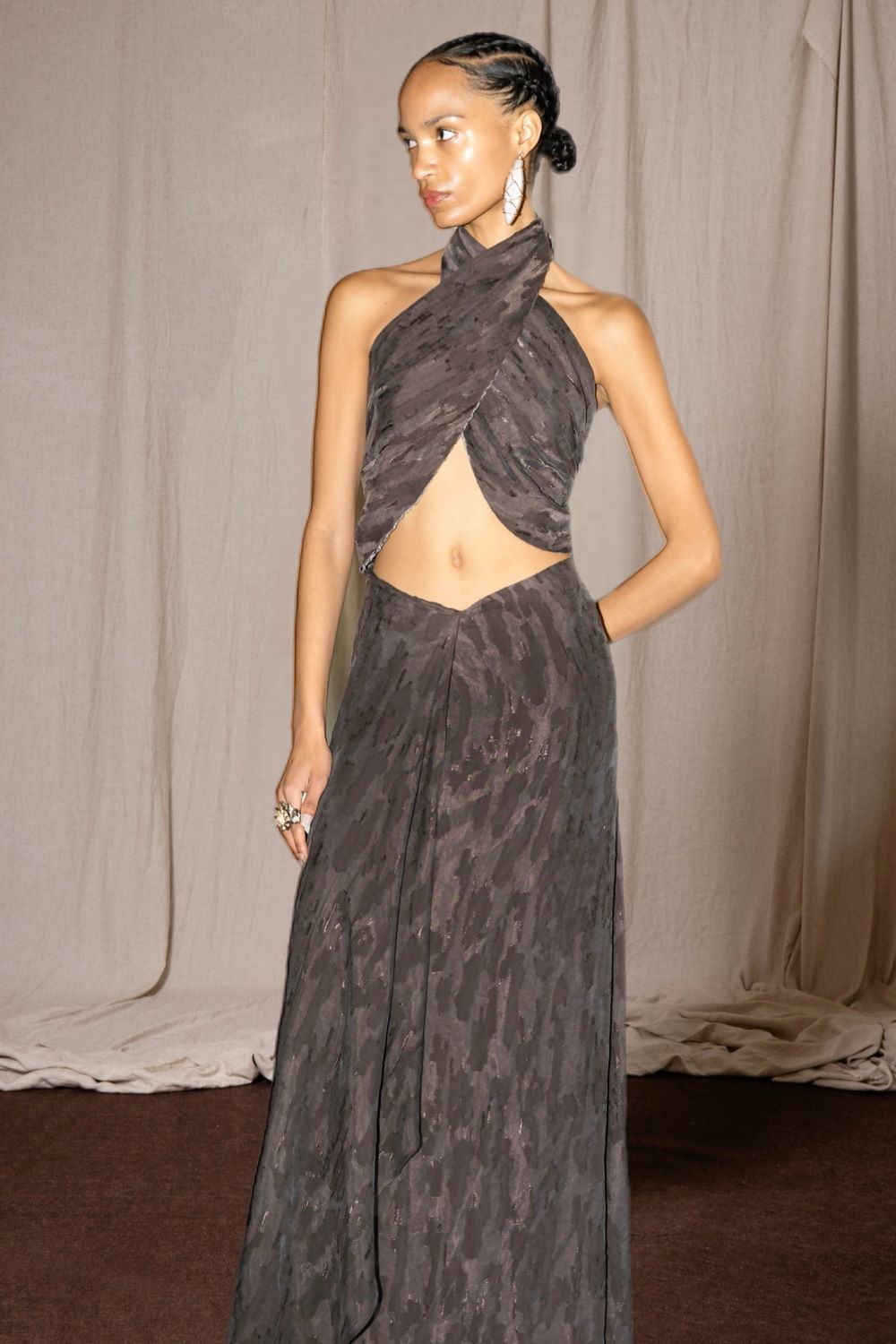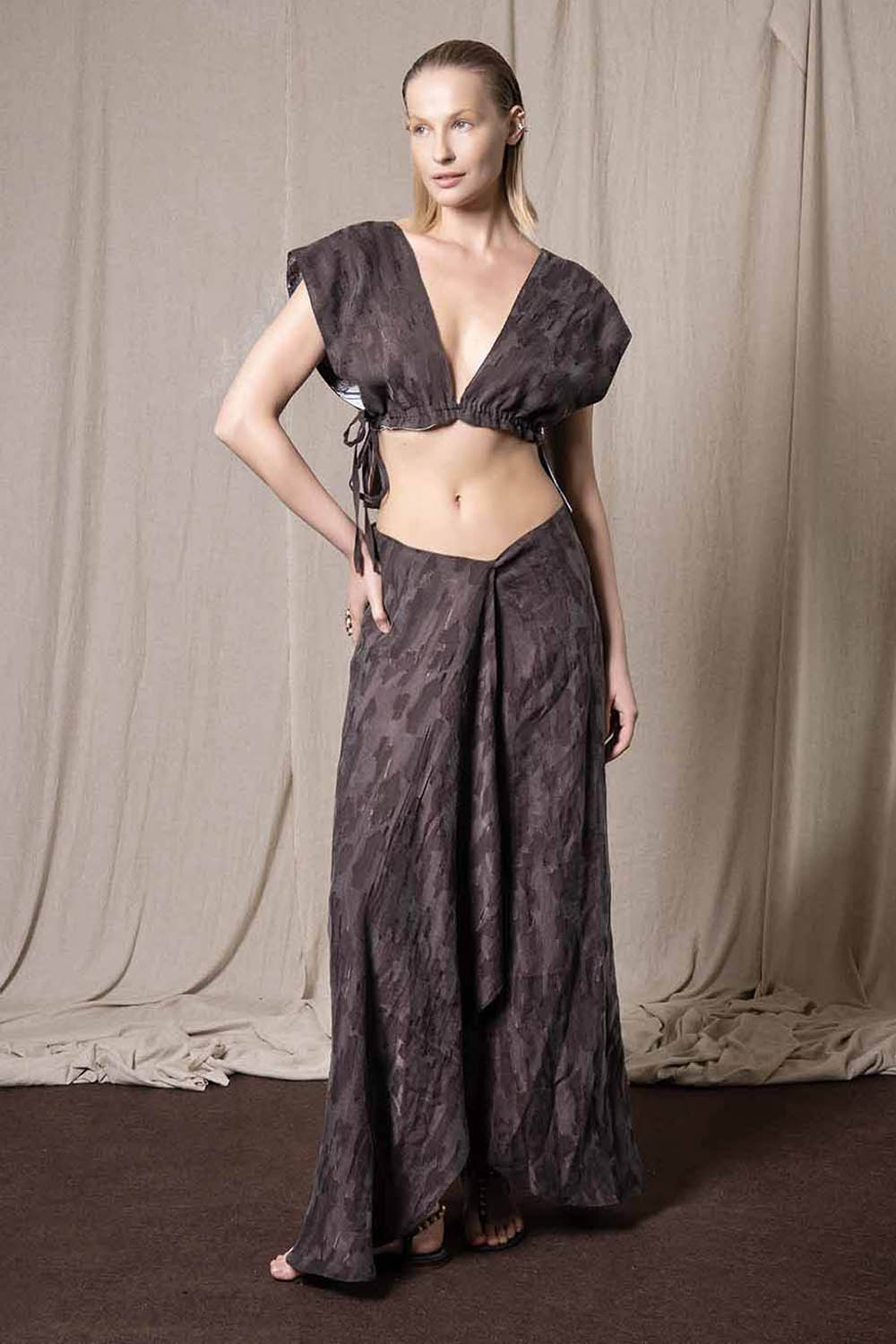 Mocha tonlarındaki doğal desenli kupra kumaş ve transparan file dokularla şekillenen bu koleksiyon; hem şık hem de cesur bir duruş sergiliyor. Her parça, içgüdüsel bir enerji taşırken sofistike bir sadeliğe de sahip. Wild Innocence, güçle şıklık arasında seçim yapmaya değil, ikisini aynı anda taşımaya cesaret eden kadınlar için tasarlandı.