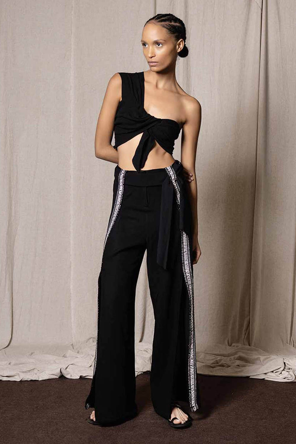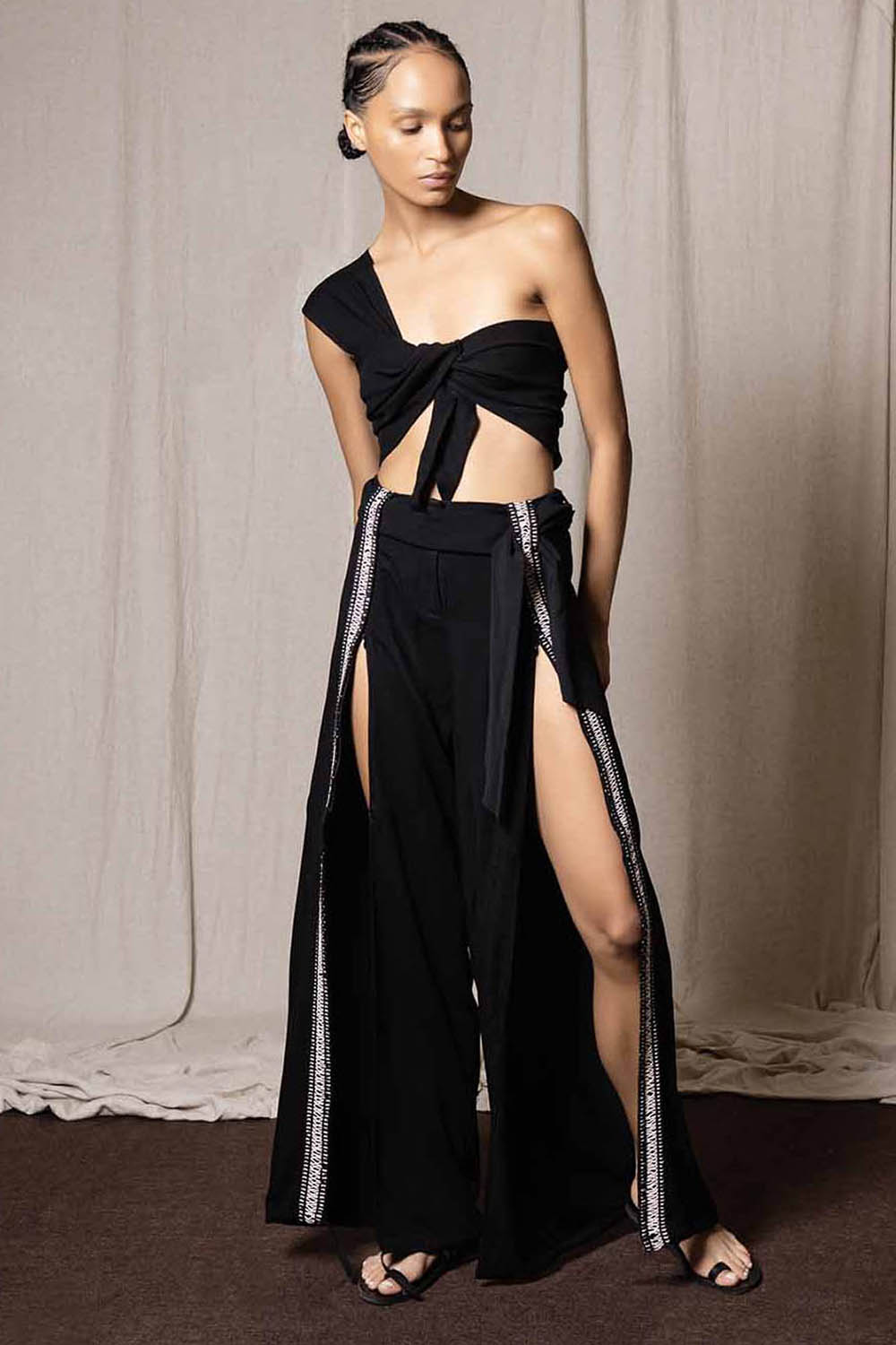 Zayıf Gösteren Yırtmaçlı Siyah Pantolon
