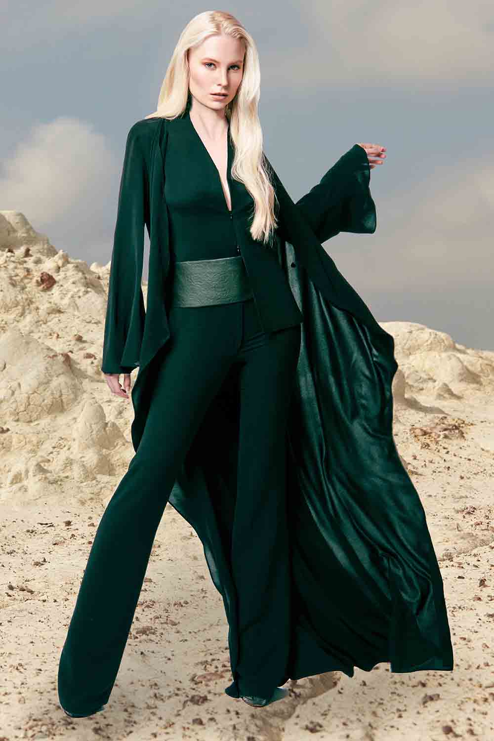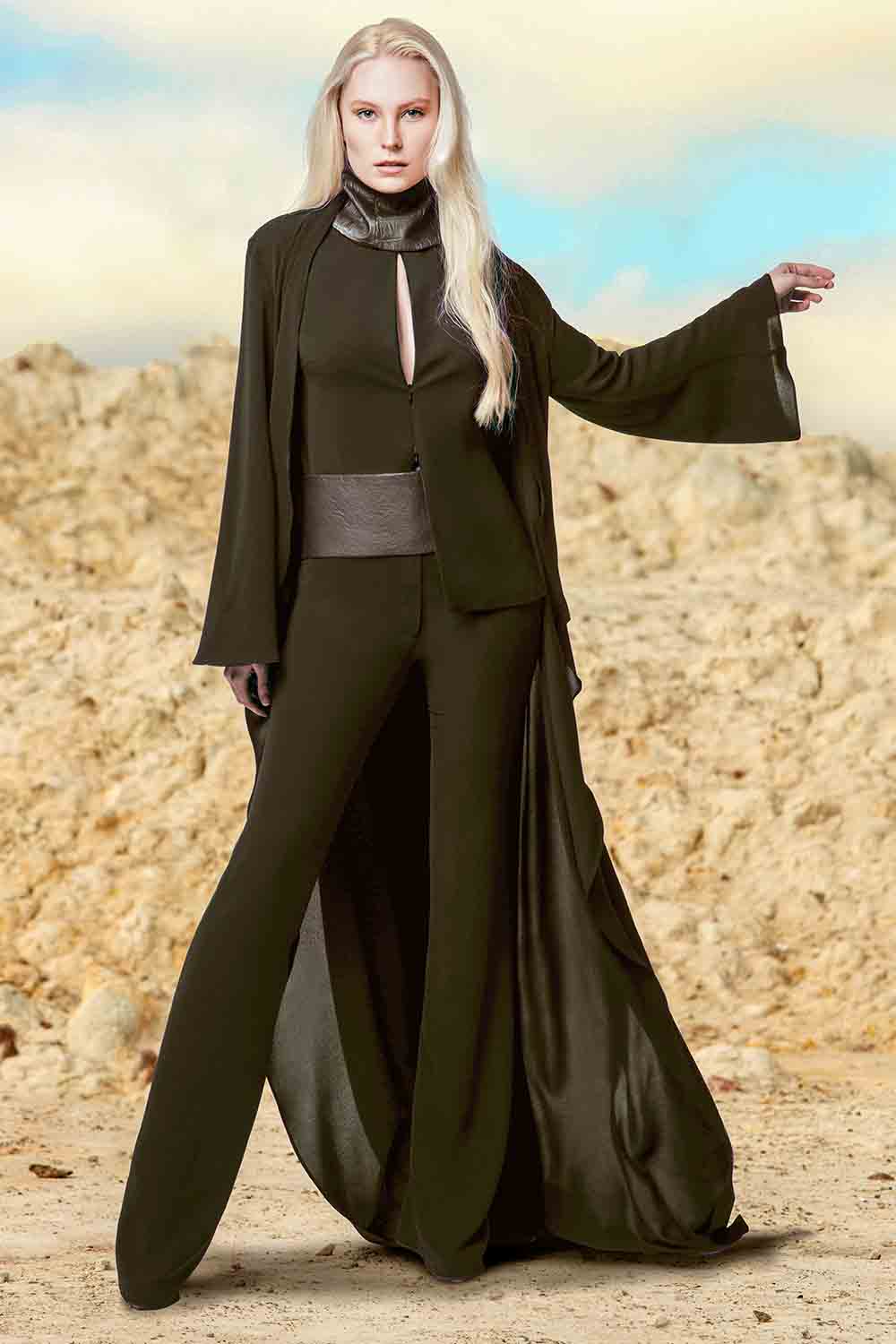 ***VİSCON kumaş Miracle Pantolon Adımlarınla şekil alan bir mucize…“Miracle”, adını hak eden bir pantolon. Aylar süren kalıp çalışmasının sonucu olarak Miracle yalnızca bir giyim parçası değil; bedeninle iş birliği içinde çalışan, onu yükselten ve daha da önemlisi ona güven aşılayan bir form. Özel kalıp detayı, iç bacaklardaki fazlalıkları arka bölgeye doğru yönlendirerek hem daha ince bir iç bacak görünümü sunar hem de kalçayı yukarı kaldırarak daha şekilli ve belirgin hale getirir. Baseni toparlar, bacak boyunu olduğundan çok daha uzun gösterir. Yüksek bel formuyla zaten beli saran yapısı, korseden ilham alan özel kemer detayıyla birleşerek bel hattını netleştirir ve silüeti güçlendirir.…